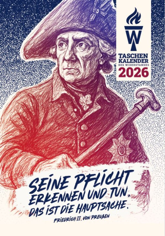 Eine schöne literarisch-politische Tradition setzt sich fort: Bereits zum 23. Mal erscheint unser beliebter Begleiter durch das Jahr – der Taschenkalender des Widerstandes für das Jahr 2026. In bewährter Aufmachung vereint er geschichtliches Erinnern, geistige Orientierung und politische Haltung – für alle, die auch im Alltag standhaft bleiben wollen.